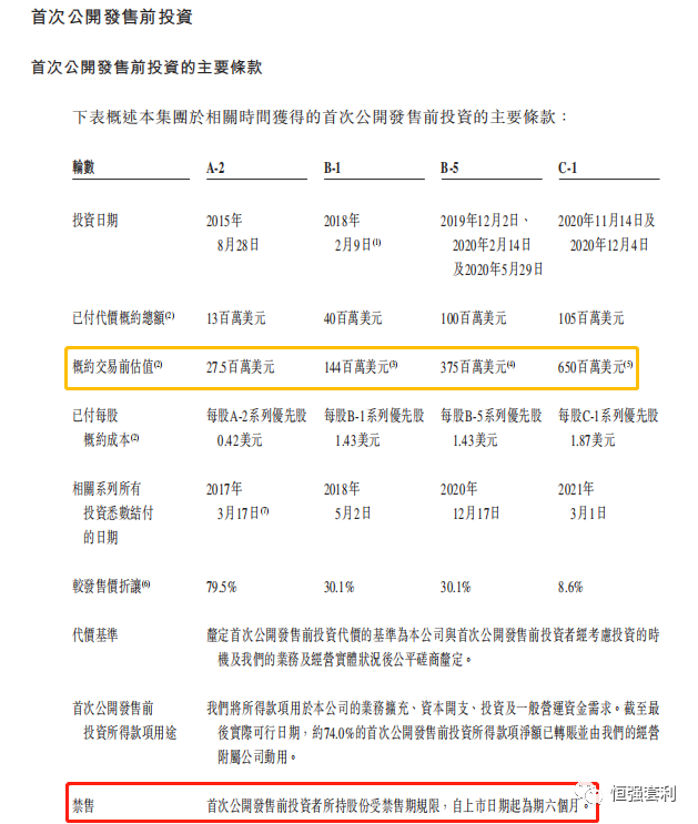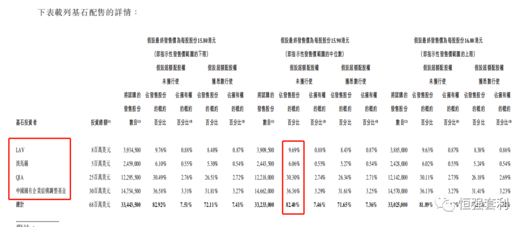 公司引入4名基石投资者,包括 LAV、淡马锡、QIA、中国国有企业结构调整基金会,认购以发售价购买的总金额约6800万美元的相关数目发售股份(约5.28亿港元),在不启动回拨的情况下,按中间价计算,约占发售股分82.41%,认购比例创港股IPO历史新高。设6个月禁售期。