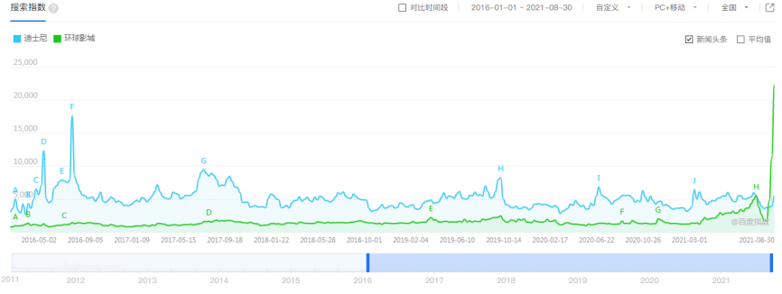 在中国消费者群体中,迪士尼和环球影城的热度难分高下。