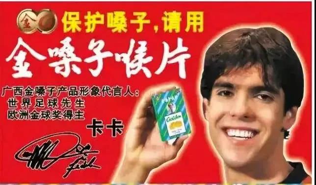 更可气的是,金嗓子在东窗事发后,还专门找了肥罗的队友卡卡当正经代言人,代言费1430万人民币,让罗纳尔多受到了二次伤害。卡卡版的广告设计,跟肥罗版本几乎一模一样,字体和背景,以及诡异笑容全都是如出一辙,可见即使换了代言人,金嗓子也要继续消费罗纳尔多。