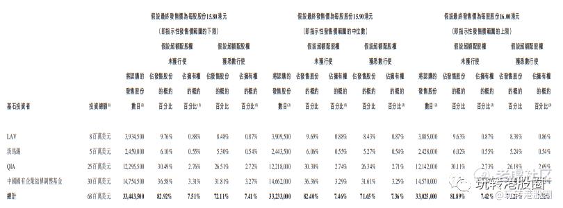 多名基石投资者同意按发售价认购可供认购的发售股份数目,总额约6800万美元,占比总金额的82%,包括LAV、淡马锡、QIA、中国国有企业结构调整基金。