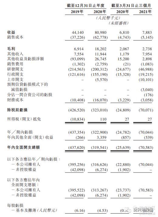 2019年至2020年的营收分别为4414万元和8098万元,同比增加为约83.46%,2020年至2021年截止3月底三个月的营收分别为681万元和788.3万元,同比增长为约15.76%。