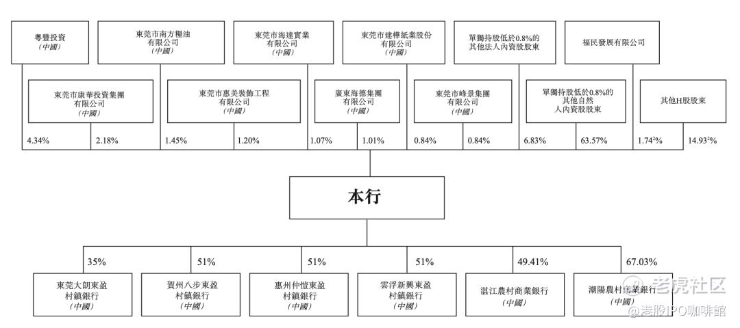 东莞农商行是一间典型的农商行,由东莞市内的农村信用合作社合并而来,由于历史原因股权结构复杂: