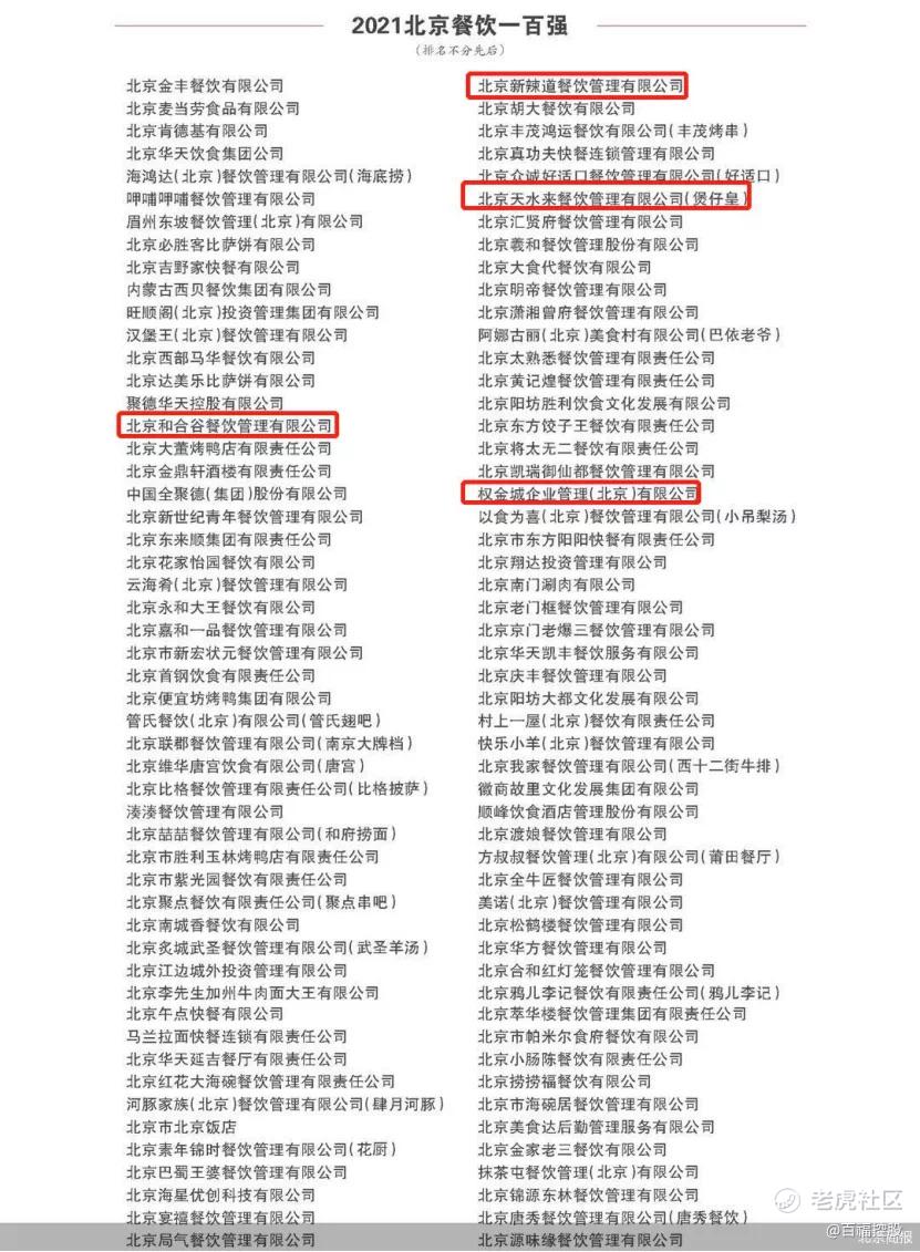9月5日,2021北京餐饮品牌大会在北京国家会议中心举办,“2021年北京餐饮百强企业”名单公布。$百福控股(01488)$大家庭成员品牌和合谷、新辣道、煲仔皇均上榜,弘毅投资布局的权金城也在列。
