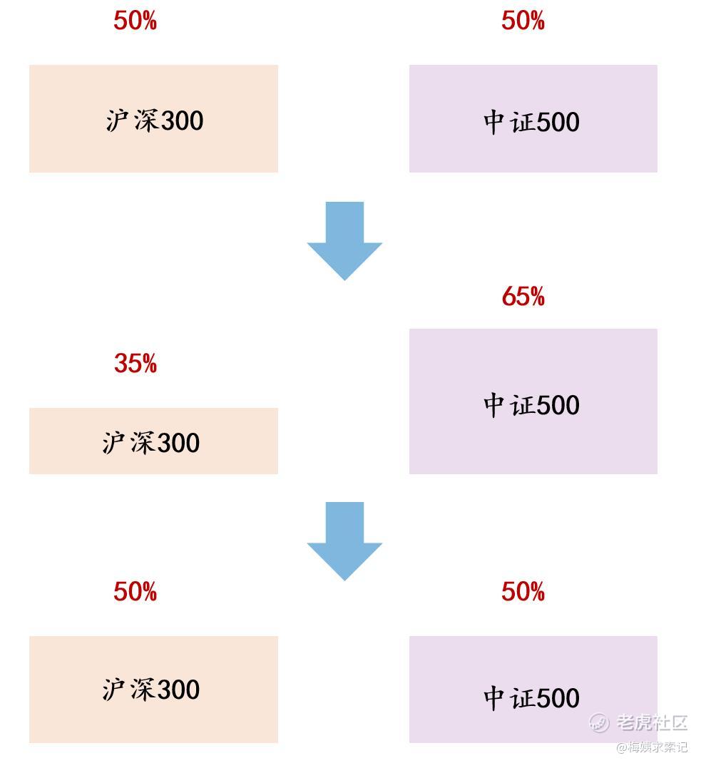 既然两个指数各有千秋,我们根据个人偏好均衡配置就好啦!比如,大家还记得梅姨在《指数高估时,我们还能买什么?》中讲过的一种股债自平衡的方法吗?举一反三,你也可以设置一个中证500和沪深300自平衡的方案。