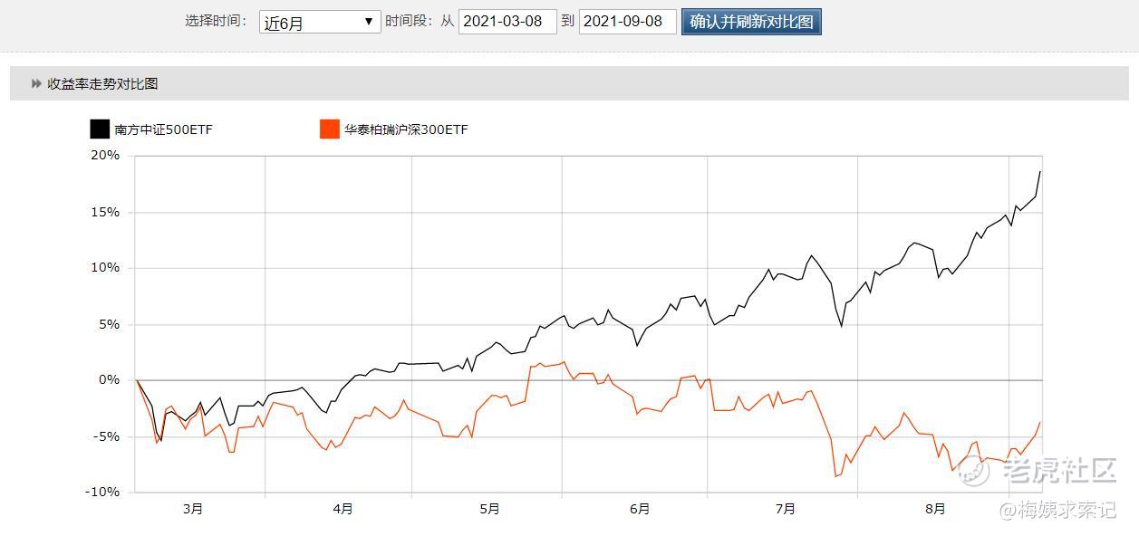也难怪,看看最近6个月中证500和沪深300的收益对比,中证500这走势可以说是一骑绝尘,沪深300与它一比,顿时就不香了~