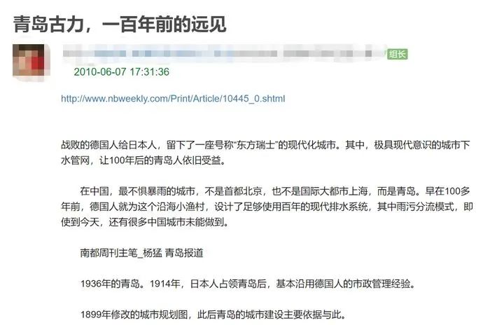 最著名的便是中国人自己编纂的“下水道神话”。每逢出现其他城市的内涝,青岛的德国下水道就要被拿出来吹嘘一番。说是青岛由于100年前德国人承建的下水管道,全城无一处积水,并且下水管道附近还发现替换零件。
