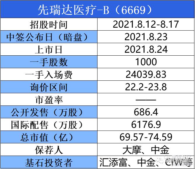 总体而言先瑞达在细分领域确实基本面不错,包括产品疗效等方面都很好,这也是部分人看好的原因。虽然先瑞达市场规模不大,2020年只有1.64亿的规模,但还有拓展空间,加上基石个人投资者和中资基金较多,公司董事团队实力尚可,而且发售股数较少,想中签估计得上乙头。