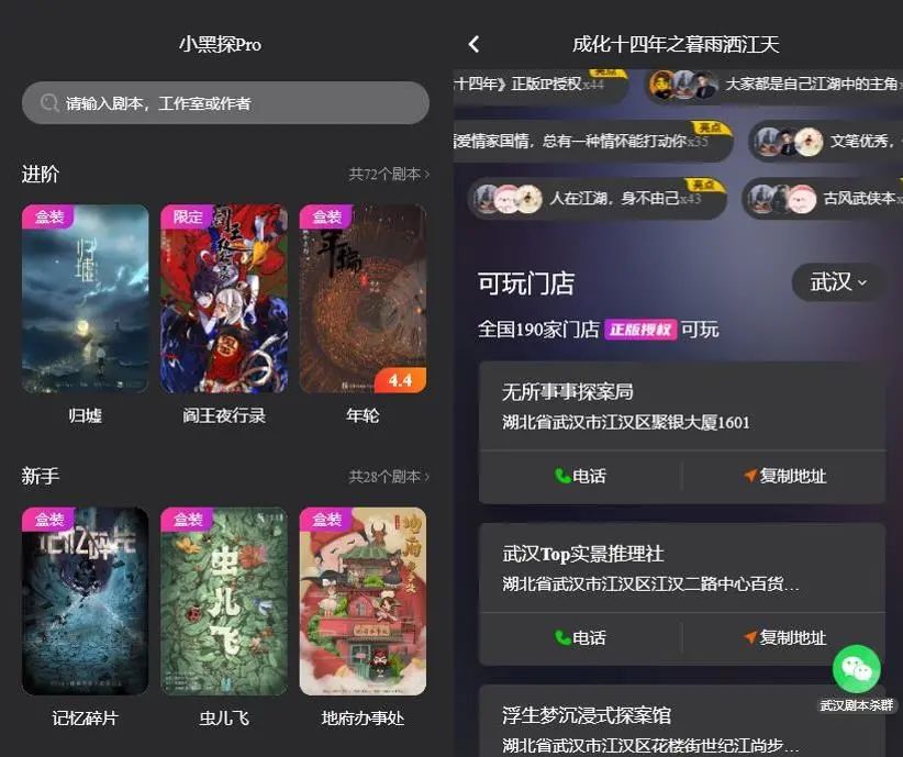 此外也有偏向用户端业务,例如旗下小程序“小黑探Pro”,就提供了类似豆瓣平台的剧本详细资料与玩家讨论,可供普通用户评论交流。