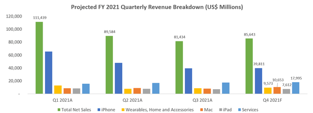持续的全球芯片供应短缺造成的产销瓶颈只是苹果iPhone和iPad热潮的暂时停顿,预计在明年某个时候供应链从目前的紧缩状况中得到缓解后,这种热潮将恢复强劲。当这种情况发生时,我们应该期待强劲的需求支撑着高于正常的销售水平,类似于 6 月季度观察到的情况。