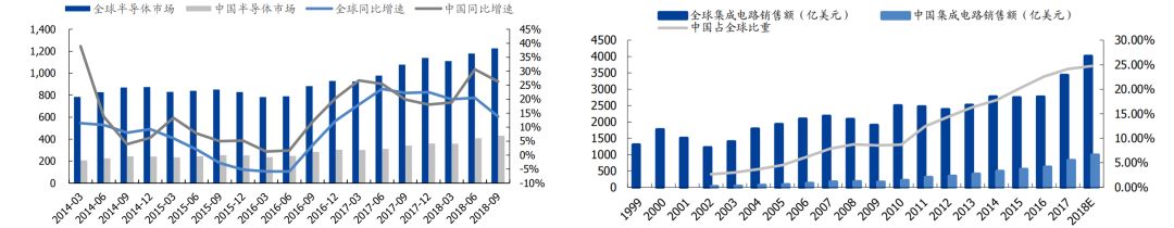 (1)中国半导体市场规模占全球比重持续提高。