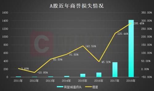 据choice数据显示,截至2018年末,A股商誉共13059.76亿,而2018年第三季度末,这一数值为14474.50亿。也就是说,2018年A股商誉减值超1400亿,超越历年来的总和。