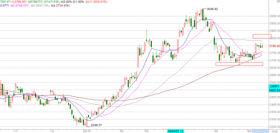 但短线上,特别在上证50的图表中,有机会在本周先反弹一波,至2850-2900点左右。