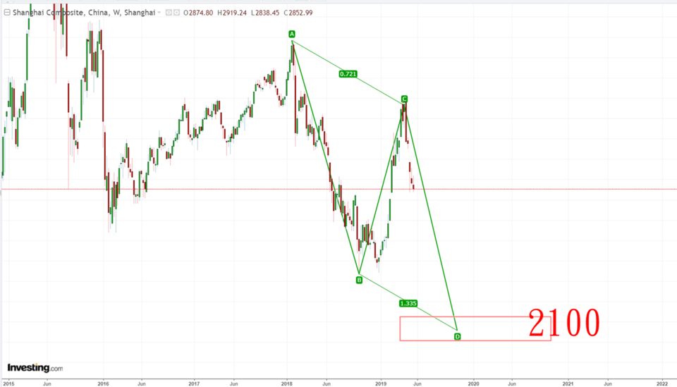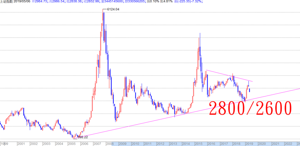 目前先讨论上证的走势,第一. 上证目前最乐观的走势是在2800/2600点的位置见底。