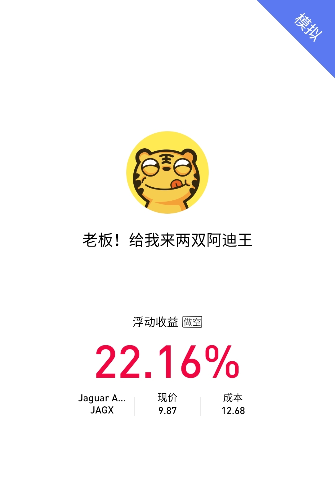 $Jaguar Animal Health, Inc.(JAGX)$嘻嘻嘻(♡˙︶˙♡)
