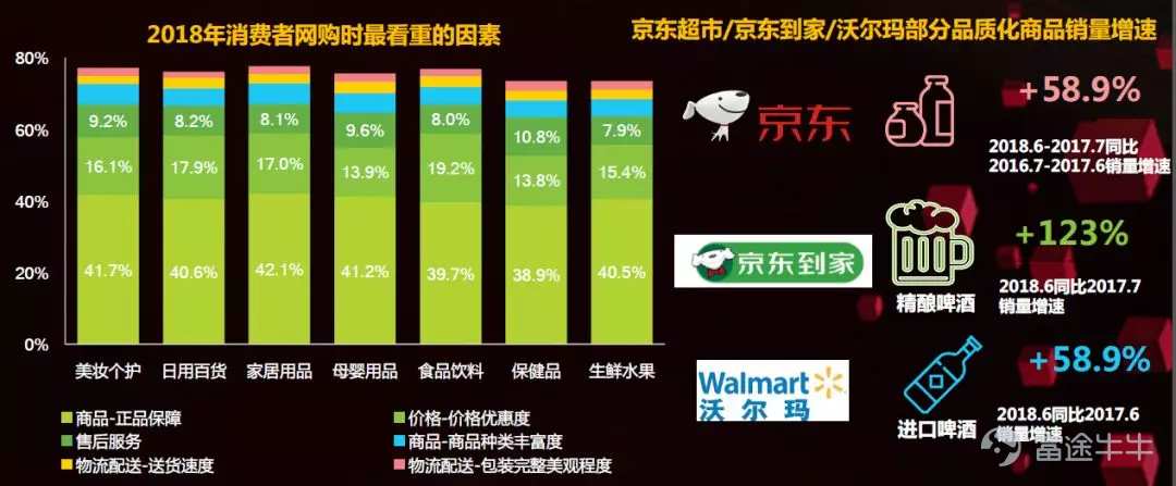 其次还从品类和渠道来研究消费者在不同品类和不同渠道中对购物体验和服务的要求,以及在线上线下不同的渠道以及融合的平台中,不同品类的销量增速。