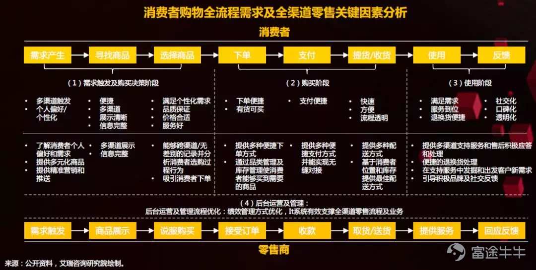 最后,附上《2018中国零售商超全渠道融合发展年度报告》绘制的消费者购物全流程需求及全渠道零售关键因素分析图,可以从消费者的角度看出零售电商是如何演变至今天的。