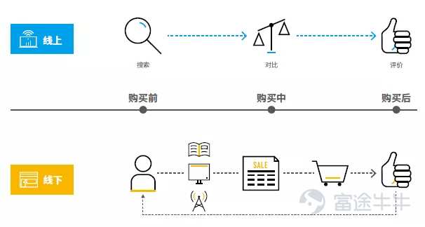 在PC时代,线下线下的购物流程都是线性的,两者被明显地区隔了。