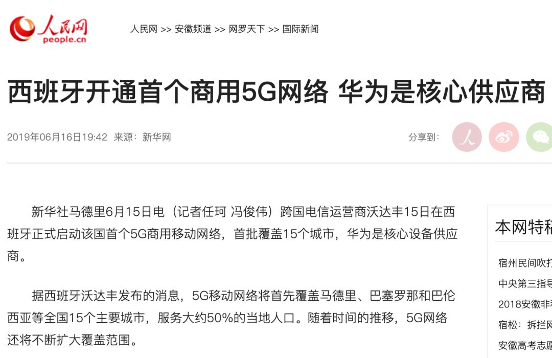 随着前几天西班牙宣布启用华为技术的通信5G技术,这场由美国率先发起的在全球围堵华为的战役,华为证明了自己。