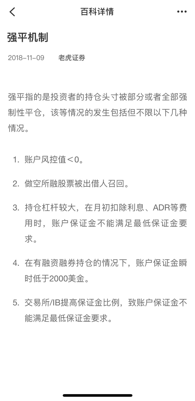 - 持仓杠杆较大,在月初扣除利息、ADR等费用时,账户保证金不能满足最低保证金要求。