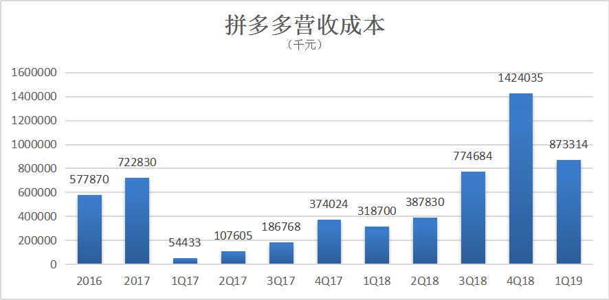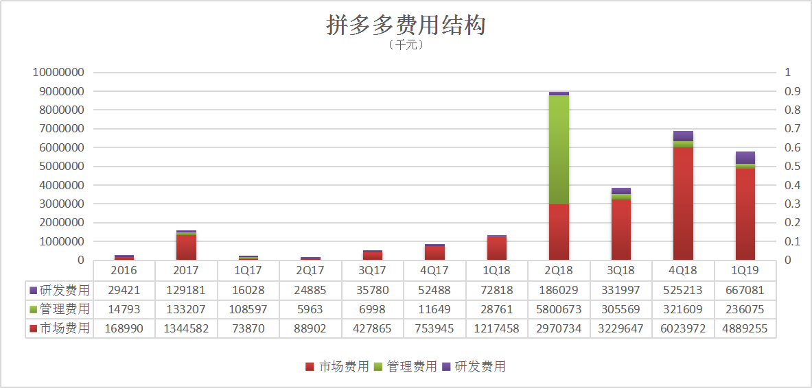 2018年第二季度,拼多多上市后一次性股权开支大增,导致管理费用大涨。