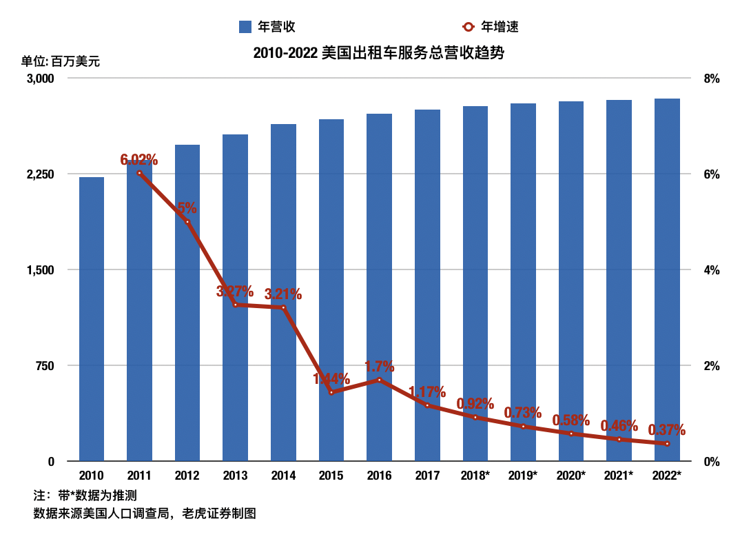 当然,这其中可能存在一定的统计误差(虽然都是官方机构,但统计口径可能略有不同),但我们仍然认为这可以部分说明出租车行业的市场规模已经趋于稳定,至少不再那么容易被抢走份额。