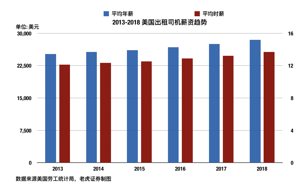 据美国劳动局统计,目前出租车行业的薪酬仍在缓步上涨: