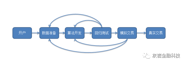 开设证券账户 >开发环境搭建->数据准备 ->交易策略开发->回归测试->模拟交易-> 实盘交易