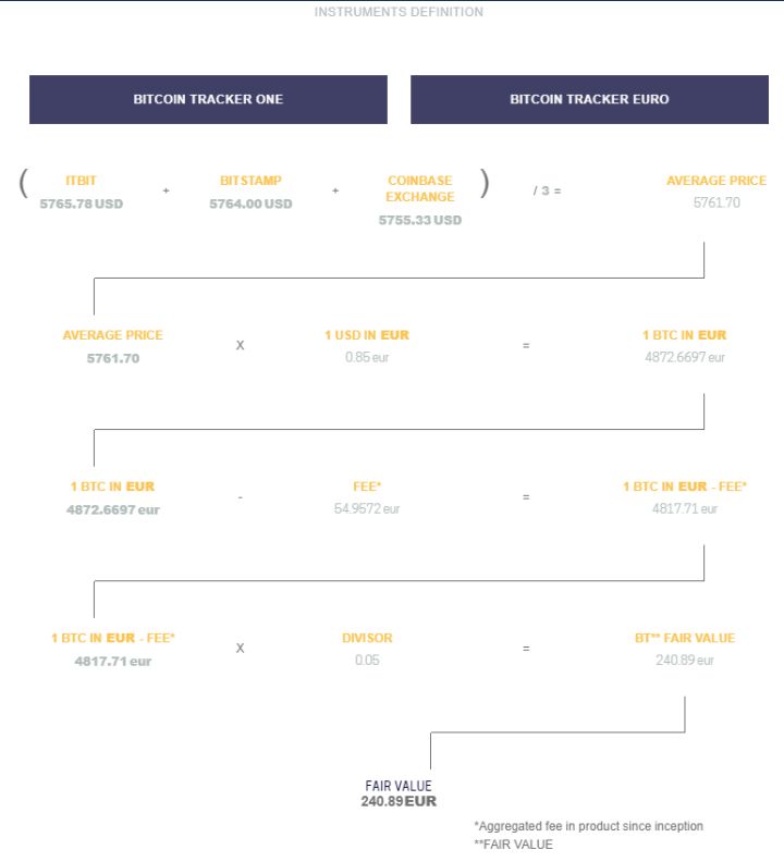 - BITCOIN TRACKER ONE-SEK-SFB,200股瑞典克朗计价的该基金对应一枚比特币。BITCOIN TRACKER ONE EUR-SFB,20股欧元计价该基金对应1枚比特币。