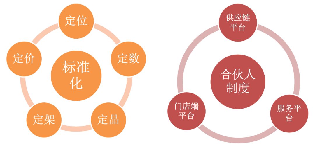 标准化体系+合伙人制度实现实体店的标准化和灵活经营并存,才能适应零售行业激烈的竞争、人才和资金密集型的需求。
