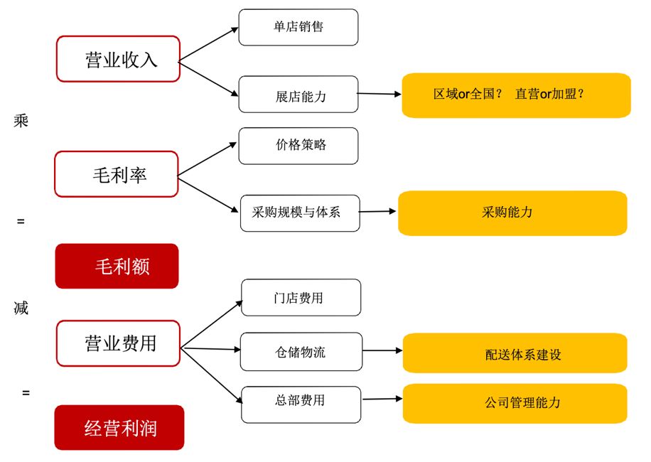 除了明确区域or全国、直营or加盟之处,“连锁模型”最为核心的还是基于“采购规模”的供应链能力建设。