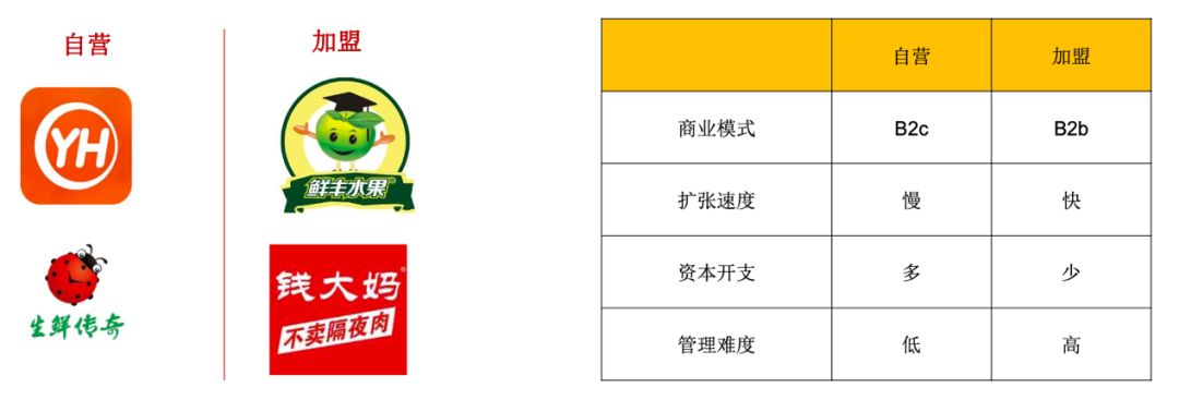 加盟模式对加盟商管控力度小,基本上属于松散管理,管理难度大;自营模式都是自己招聘和发工资考核的员工,更易管理也便于快速调整。