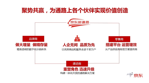 针对品牌商,京东新通路的核心理念是“做大增量、做精存量”。不仅为品牌商搭建了一条透明可控的精准分销体系,还将更大精力放到了动销上,并在帮品牌商推新品、节约通路成本上发挥价值。