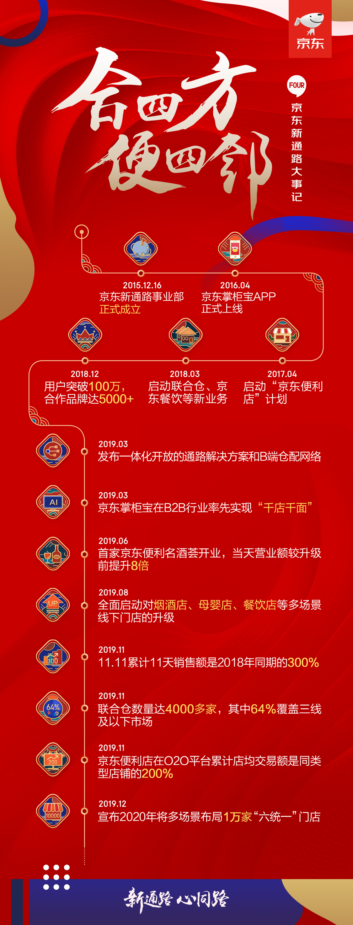 2020年,京东新通路将继续以消费者为中心,持续优化成本、效率与体验,多场景布局1万家“六统一”门店,让更多优质商品与服务走进千家万户。