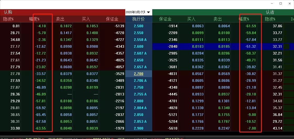 3月18日盘中波动率双杀造成的Call 、Put双杀下跌:
