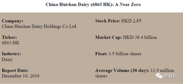 浑水将辉山乳业称为“骗子”,估值接近零