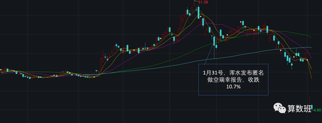 浑水针对瑞幸发布做空报告之后的股价走势