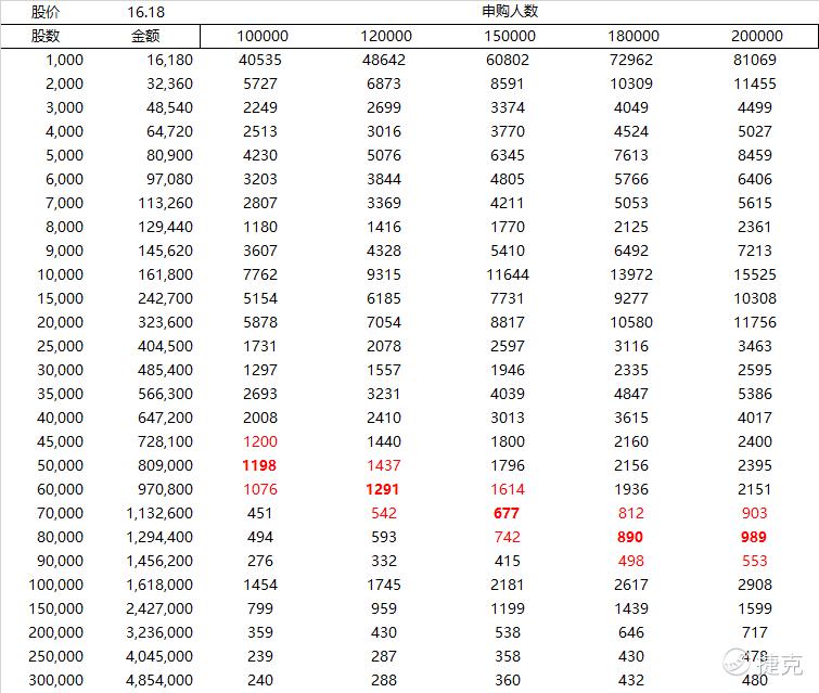 根据以往的经验来预计一下不同申购人数下康方甲组的不同档位申购人数的假设情形