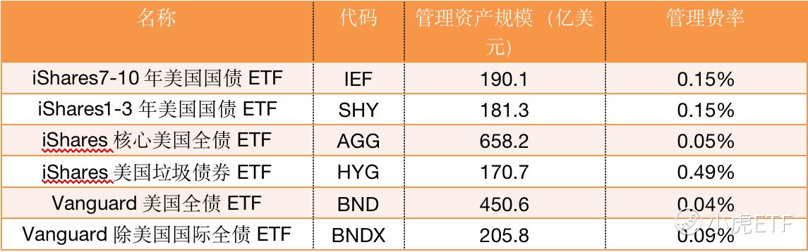 对于各位看客来说,使用ETF来配置固收产品是非常方便的手法,虽然买德国国债的ETF在17年的时候关闭了,但我们还可以用ETF来买美国国债呀(或者做空?),下面是 $债券指数ETF-iShares Barclays 7-10年(IEF)$ 、 $债券指数ETF-iShares Barclays 1-3年国债(SHY)$ $债券指数ETF-iShares Barclays综合国债(AGG)$ $债券指数ETF-iShares iBoxx高收益公司债(HYG)$ $债券指数ETF-Vanguard美国(BND)$ $Vanguard Total International Bon(BNDX)$ 的信息: