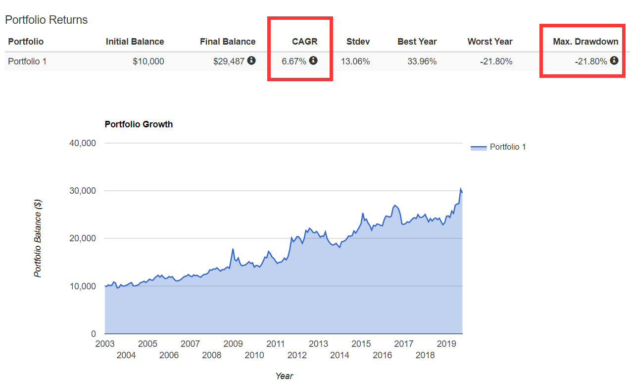 这一次,依然没有被清零,我们的最大回撤降到了21.8%,大家都变得可以接受了,但是我们的复合年化收益,却下降到了6.67%。