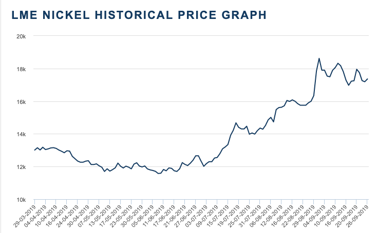 以下图片是从LONDON METAL EXCHANGE,它表示镍价,LONDON METAL EXCHANGE是欧洲的核心金属交易所。最近6个月镍价已经涨了33%。目前镍价是1.7万美金一公吨。