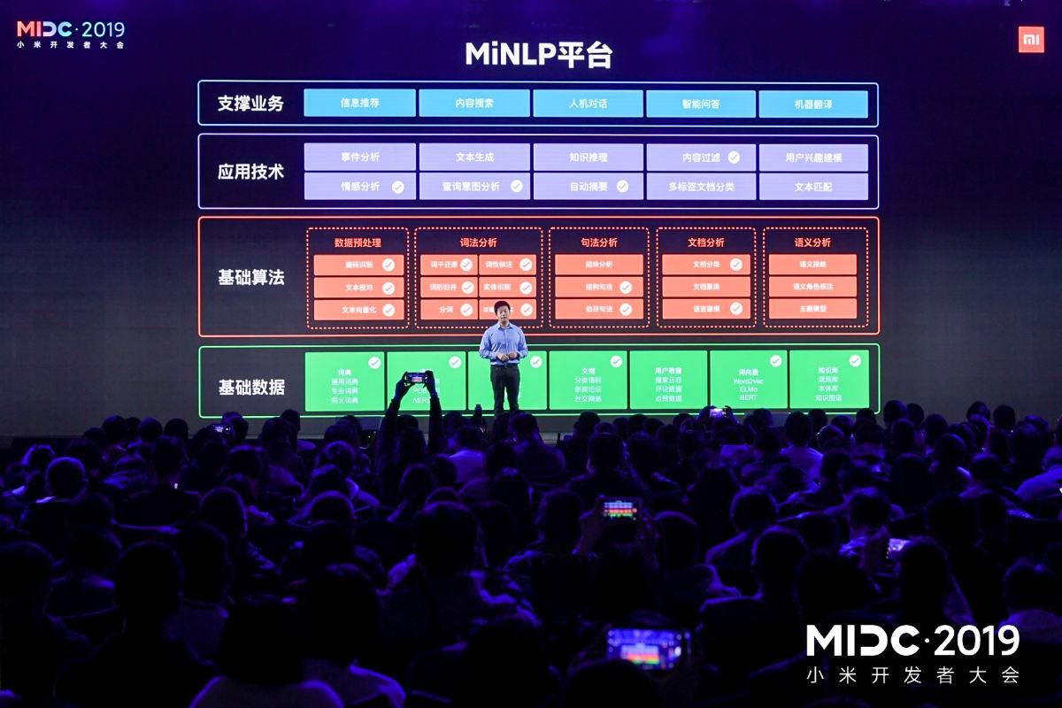 在此次大会上,小米AloT的核心技术集体亮相,具体包括深度学习框架MACE、自然语言处理MiNLP、小爱同学3.0。