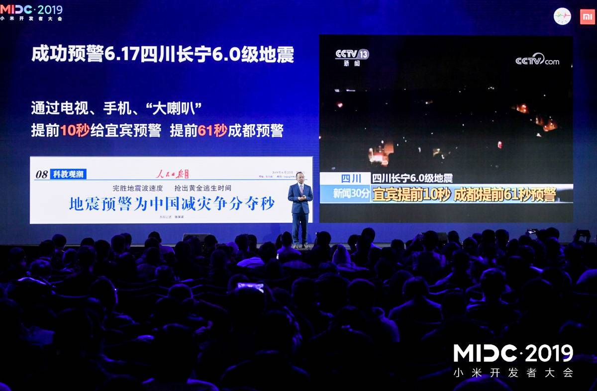 发布会的一个亮点是——小米IoT平台已经接入了成都高新减灾研究所的地震预警系统,小米用户可以更及时地受到地震预警。小米也成为了全球首个操作系统级接入地震预警的手机+消费AIoT平台。