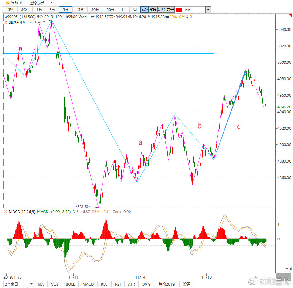 11月18日本周一,我确认了指数短线5分钟盘整背驰的低点。今天指数小级别的盘整背驰低点如何确认?实战中体会级别的操作魅力!(干货)