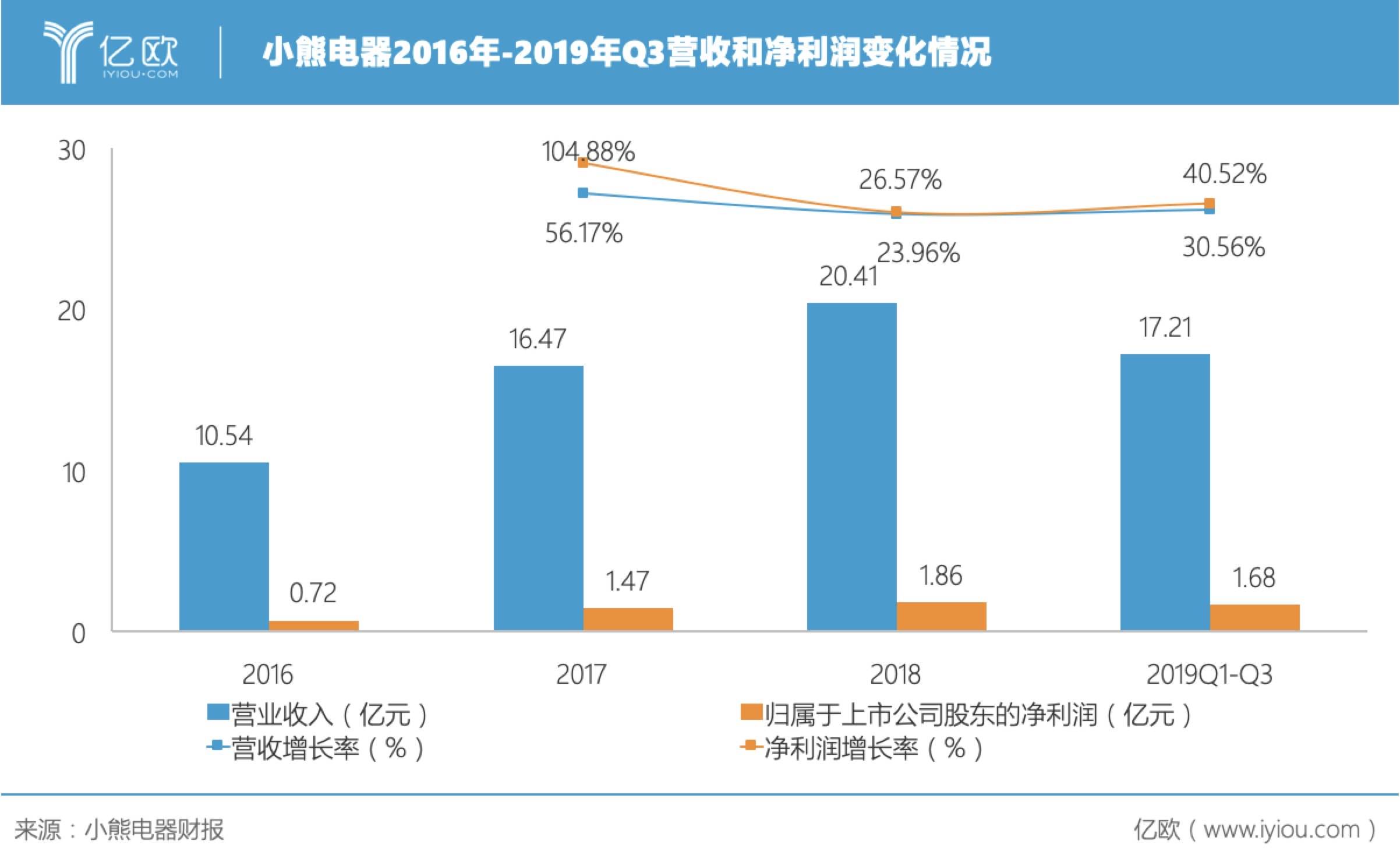 小熊电器上市后首份财报,2019年Q1-Q3净利润同比增长40.52%