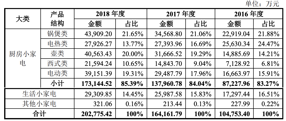 对于小熊电器来说,从上市前披露的招股书中可以看到,旗下产品厨房小家电占到85%左右,另外在生活小家电和其他创意小家电方向,小熊电器也在探索寻找新的增长极,但目前尚未形成有力的营收支撑;此外,小熊电器90%以上的营收来自于线上销售,如果线上竞争进一步白热化甚至恶化,对于小熊电器来说经营压力会进一步加大。