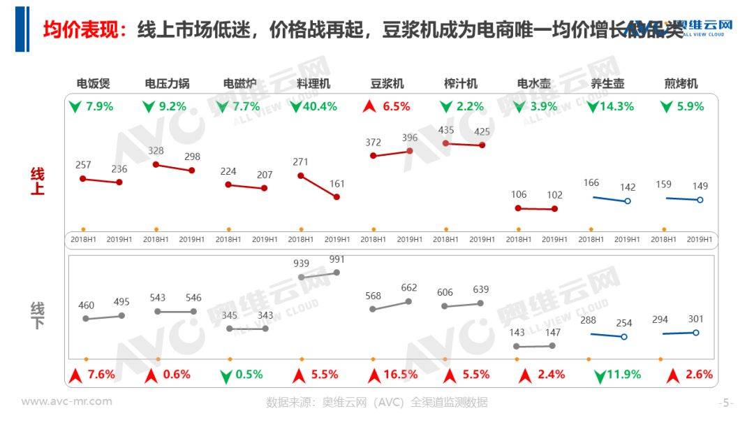 据奥维云网(AVC)的报告数据显示,小家电2019年H1规模为288.8亿元,同比增长仅2.7%,但是有两个发展趋势,首先是除了电饭煲和料理机类产品,其他厨房小家电品类的增长态势并不乐观,甚至有负增长的情况;另外,各类小家电产品线上市场竞争中为抢占更多市场份额,开始陷入降价竞争的营销策略,这并不是良性的市场现象。另据智研咨询的数据显示,厨房类小家电竞争格局中,美的、苏泊尔、九阳基本占据主流厨房小家电80%以上市场份额且仍在不断加强市场渗透,留给后起之秀的成长空间在不断被压缩。