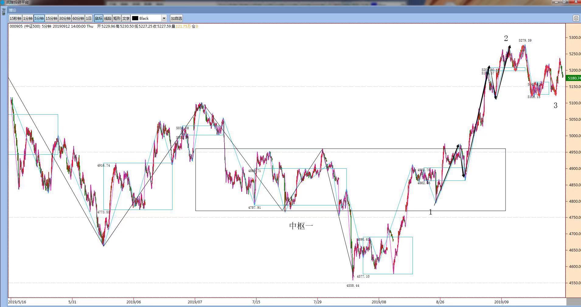 中期看905指数一直围绕中枢一做震荡。