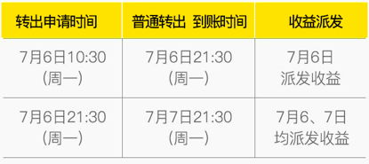 - 香港交易日上午11:00之前转出,“普通转出”一般情况下当日21:30资金到账至综合账户,当日收益仍计算;11:00之后转出则顺延一个交易日,当日及下一个交易日收益都计算。
