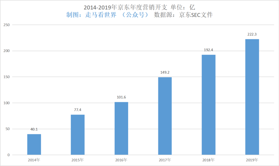 我们先来看看京东历年的营销开支: