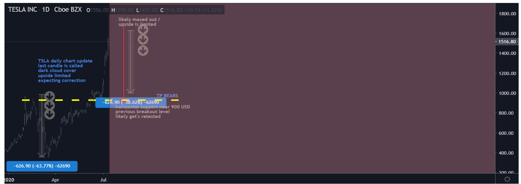 上面是特斯拉的日线图,特的股性从来就是这样,大起大幅,你看之前3月份那次,也是几乎90度拉升,双顶之后大幅回落。这次会不会重演?